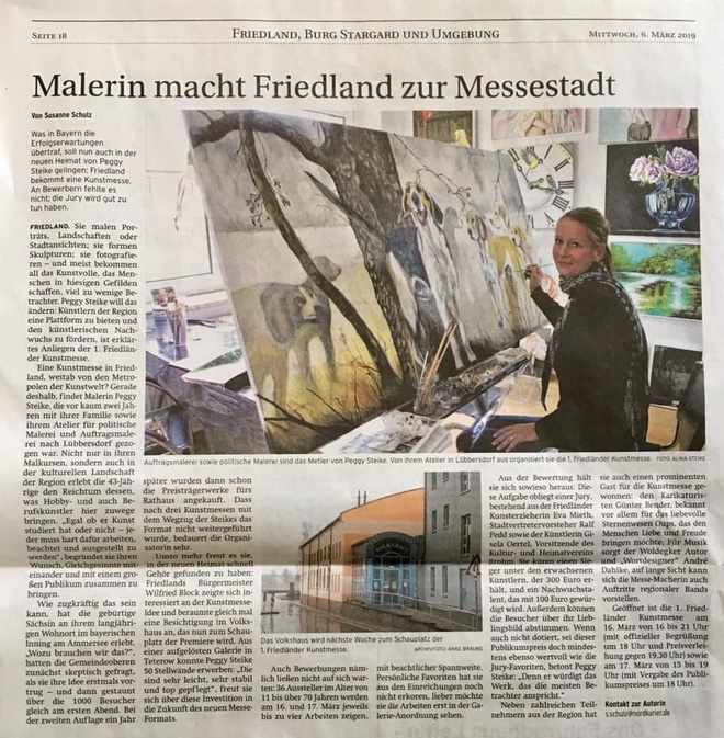 "Politische Malerei von Peggy Steike zeigt "Schonungslose Einsichten" - Werkschau im Akzent Hotel" 						Vollständiger Artikel [...]