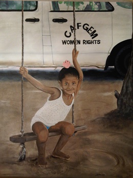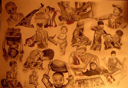 Dieses Bild entstand aus dem Gedanken heraus, den Menschen zu zeigen, was auch heute noch Kinder durchleben und durchleiden müssen. Hier sind verschiedene Schicksale dargestellt, vom Kindersoldaten über Genitalverstümmelung bis hin zur Prostitution. - Leider ist das unser Alltag, vor dem wir allzu gern unsere Augen verschließen