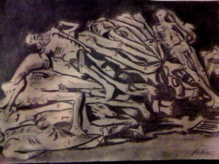 Ein Gemälde aus 3 Einzelbildern bestehend - nach den erhalten gebliebenen Fotos von Wilhelm Brasse