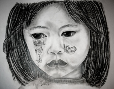 Dieses Bild entstand aus dem Gedanken heraus, den Menschen zu zeigen, was auch heute noch Kinder durchleben und durchleiden müssen. Hier sind verschiedene Schicksale dargestellt, vom Kindersoldaten über Genitalverstümmelung bis hin zur Prostitution. - Leider ist das unser Alltag, vor dem wir allzu gern unsere Augen verschließen